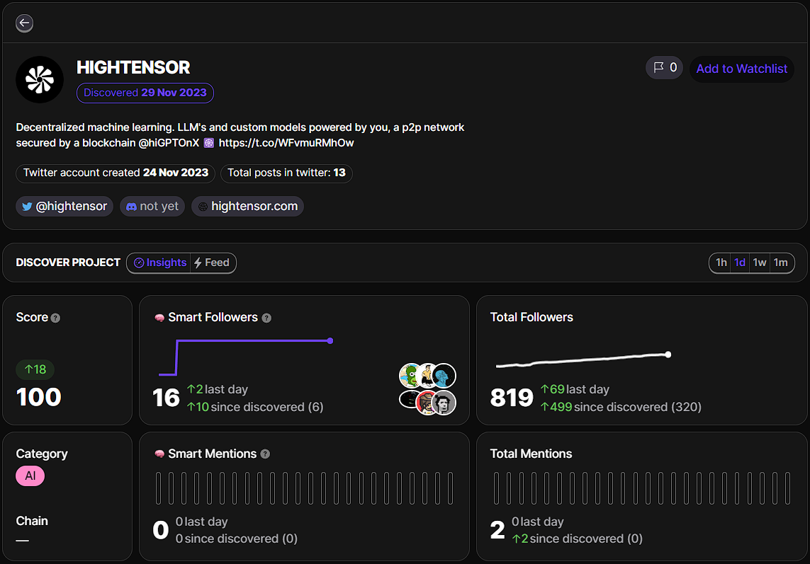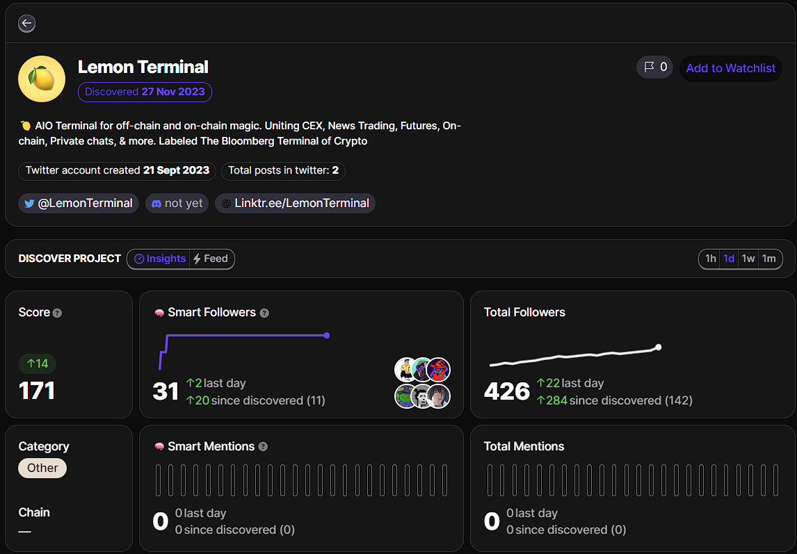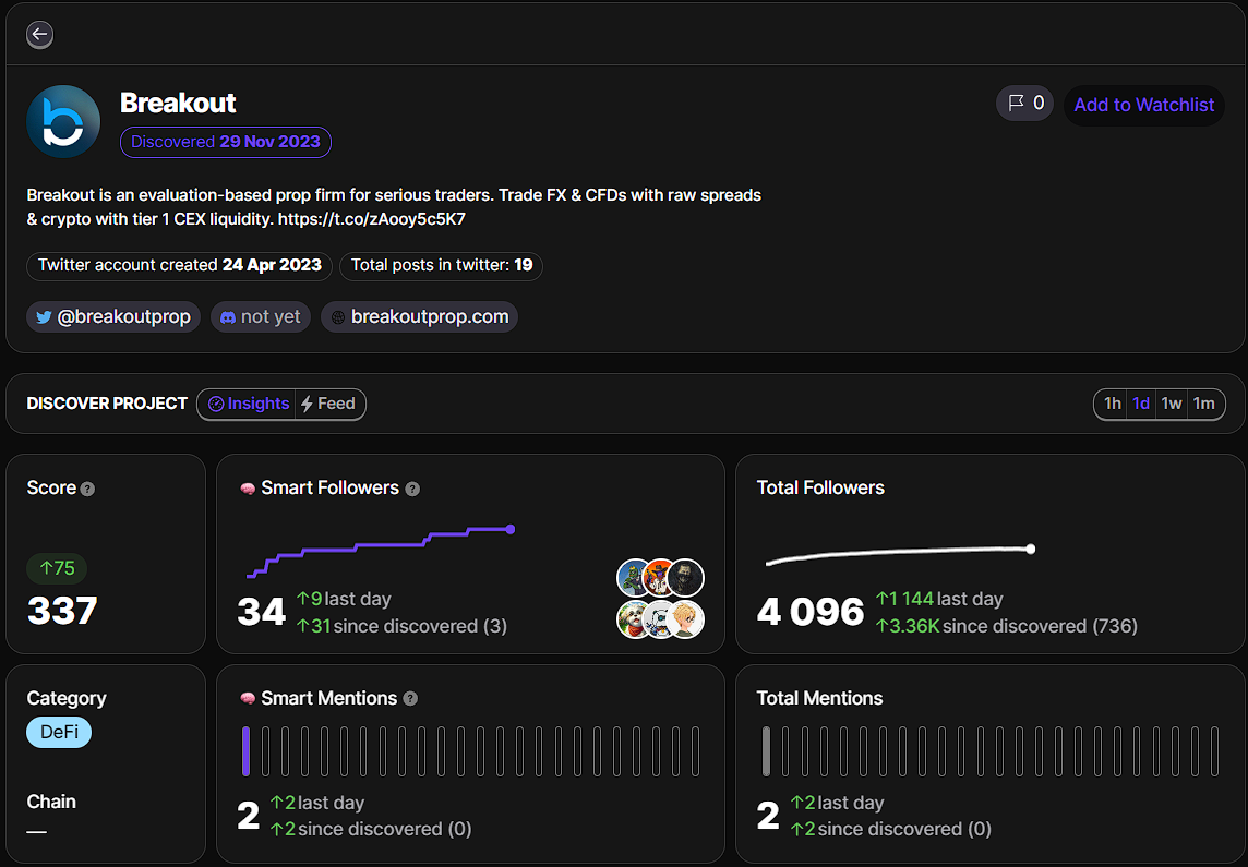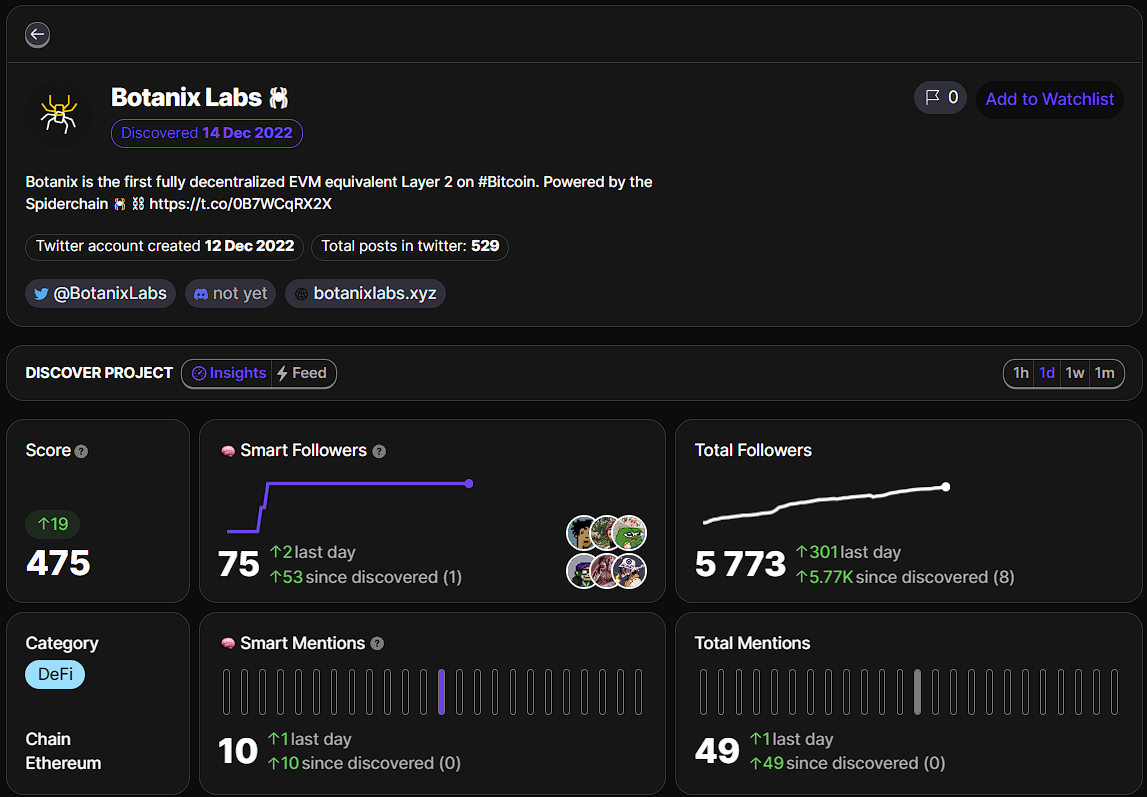 The project first appeared on the Moni Discover off-chain analytics app on 14 December at 8 followers.