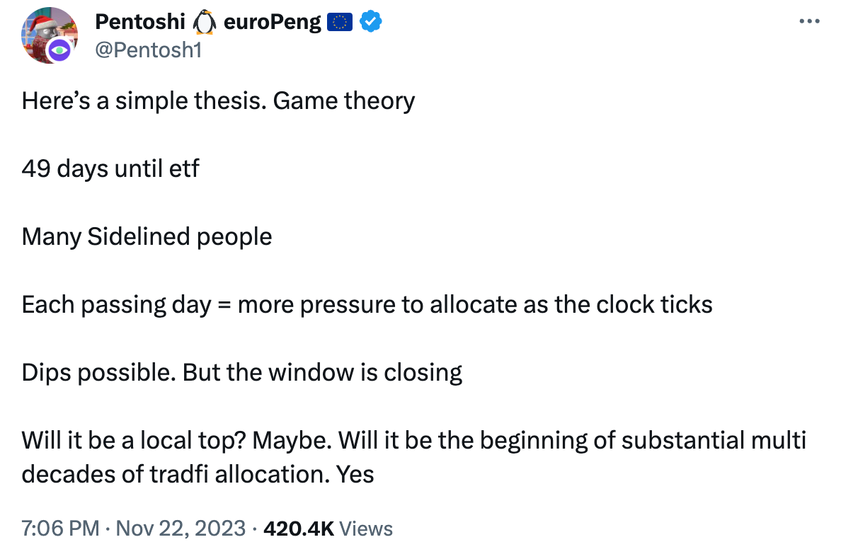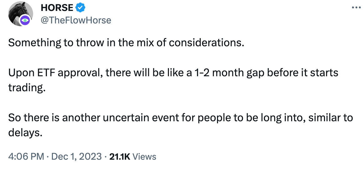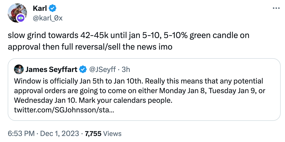 We might actually see Bitcoin hit over $40k pre-ETF. Once the ETF gets the green light, interest on BTC might dip briefly. People will be waiting for the ETF trade to kick off post-approval, and that could take months, leading to a bit of disappointment and a short-term mood drop.