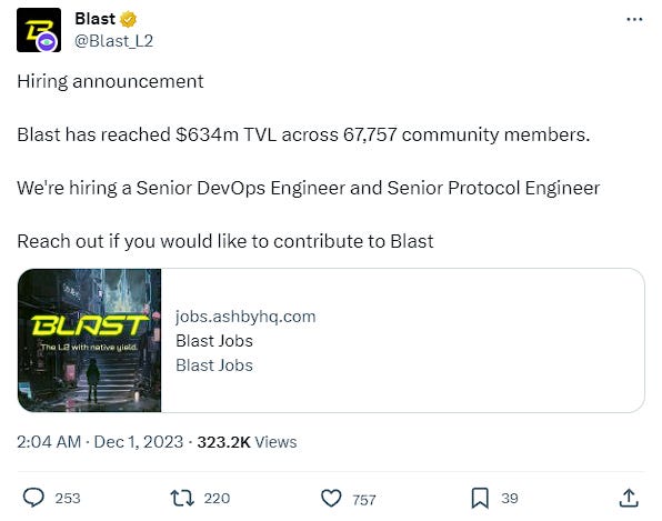 In this context, it is undoubtedly worthwhile to keep a close eye on the NFT ecosystem on this chain. Notably, Blur - Tensor also deserves attention. If it distributes an airdrop in a timely manner, it could further impact the NFT market.