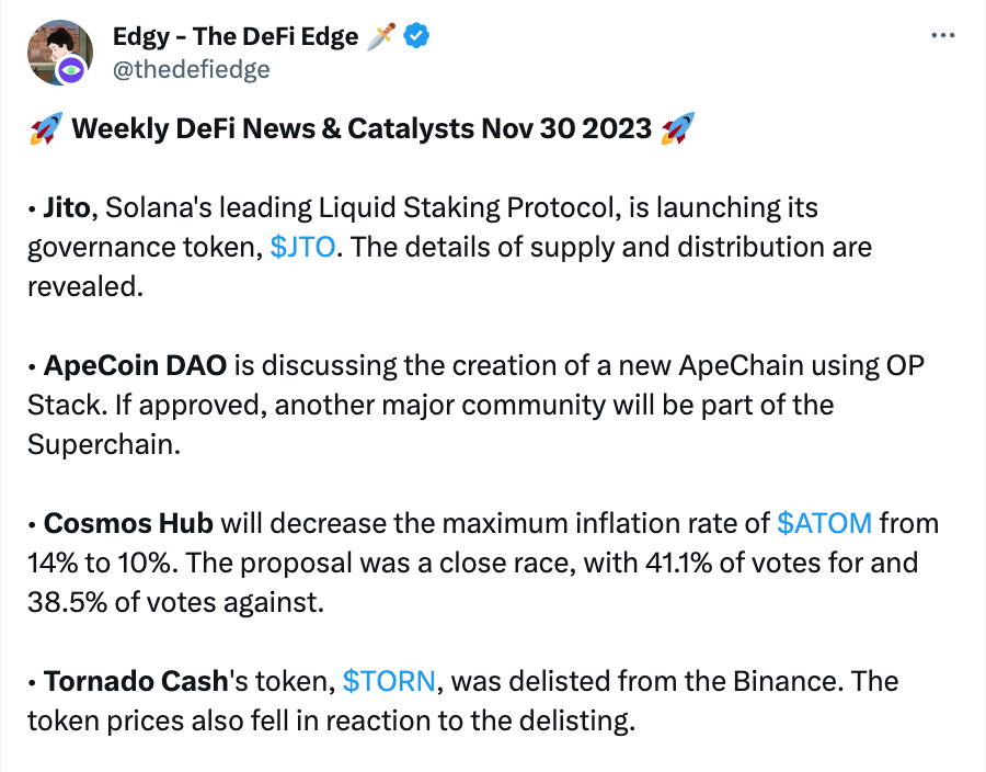 Solana continues to impress us. Throughout the month, three significant airdrops were announced: Pyth Network, Jupiter, and now Jito (similar to Lido but on Solana). Firstly, a considerable number of airdrop participants, who are yet to receive their drop from Layerzero, have already initiated and, we believe, will continue to bridge their liquidity to Solana. This move aims to seize opportunities for drops in other promising projects like Drift and Zeta.