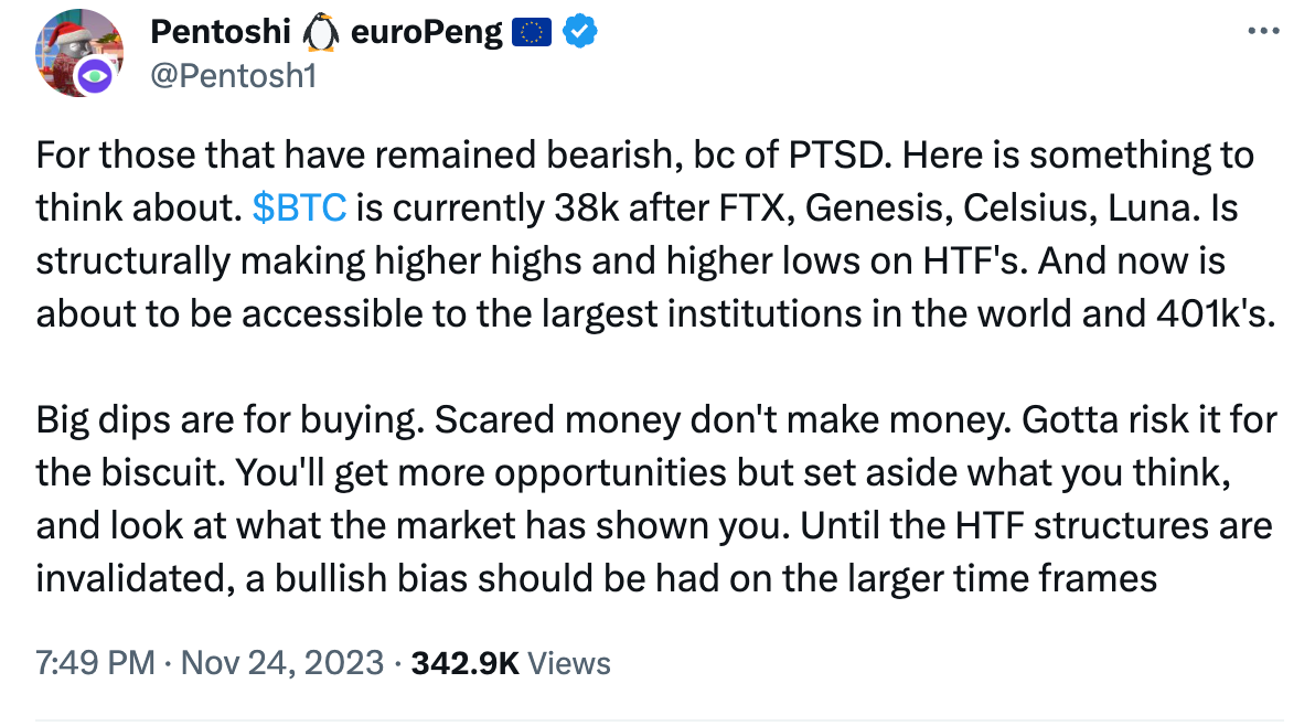 Anyway, keep adding to your strong coin positions. Don't fade - that's biggest HARAM at the beginning of a bull run, while coins are still cheap.